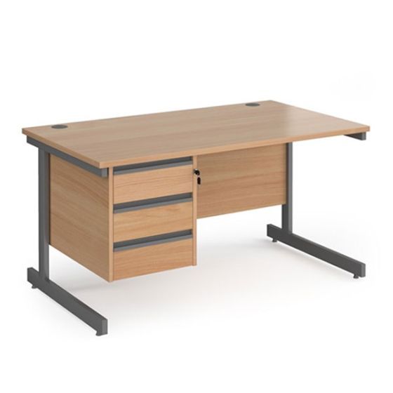 For more of a traditional office feel, the first image shows our Straight Cantilever Desk with 3 drawers. This desk is ideal for long work hours, with an added 8 year guarantee. It’s available in multiple desk colours, and leg finishes to suit your space perfectly. With 3 lockable drawers, private information can be stored safely.