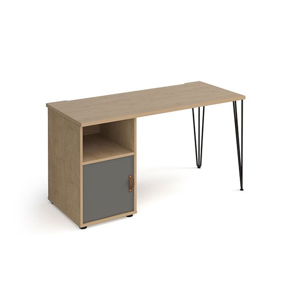 The 3rd image shows the Tikal Hairpin Desk with a cupboard. This is an ideal home office solution, adding a stylish solution to your home. The hairpin legs are sleek and stylish with a stylish cupboard for added storage.
