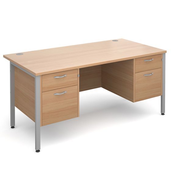 The second image shows our Maestro 25 H Frame with 4 drawers. This desk is also available in 5 desk finishes and 3 frame finishes, making this desk fully customisable. There are cable ports in the desk, to secure wires, as well as 2 drawers on each side for storage.