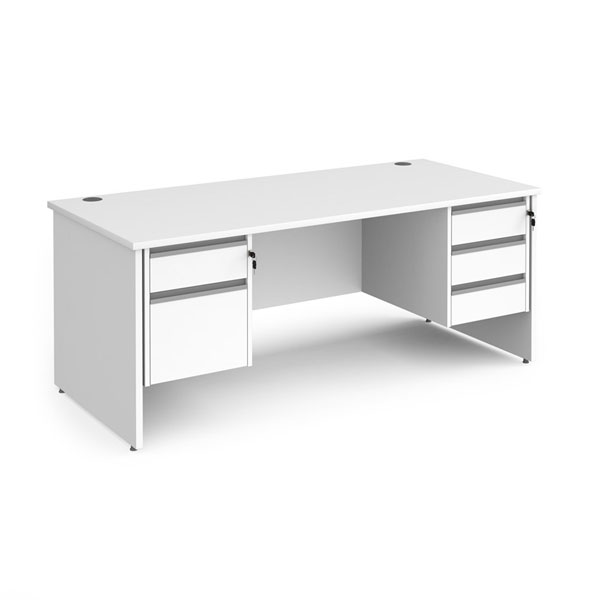 Contract 25 - Panel End Double Pedestal Desk 2 and 3 Drawers are minimal yet stylish, with beech and oak finish options to suit any office. With panel end legs made from 25mm melamine with 2mm ABS edging.