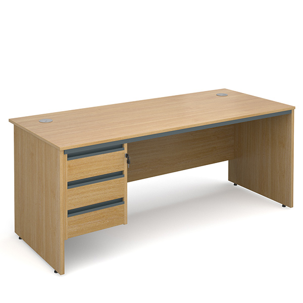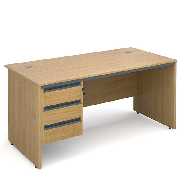 The Contract 25 - Panel End Single 3 Drawer Pedestal Desk is UK Made and available in 3 desk finishes and 4 desk widths to suit your office space.
